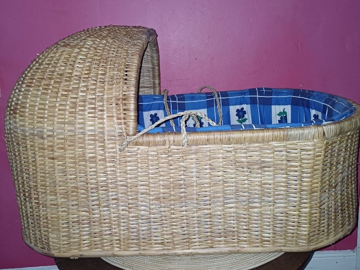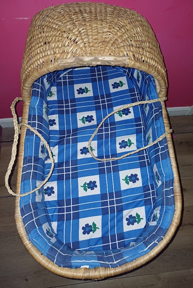 Couffin en rotin, longueur intérieure 80cm, largeur intérieure 45cm. Confortable pour bébé, mousse déhoussable.